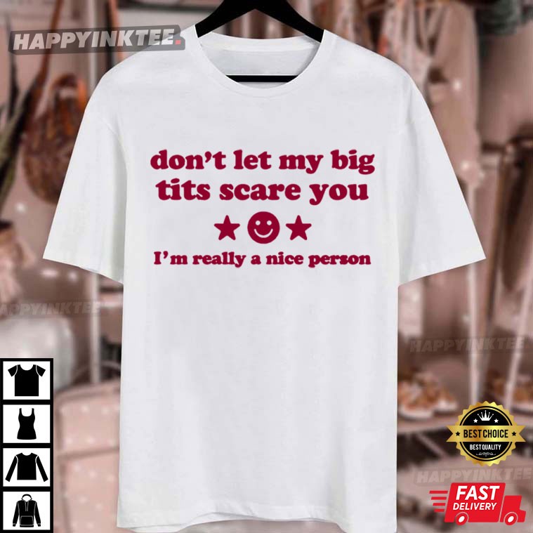 Don't Let My Big Tits Scare You I'm Really A Nice Person Funny T-Shirt – retro graphic t shirts, unique graphic t shirts, retro tee shirts, vintage 80s t shirts
