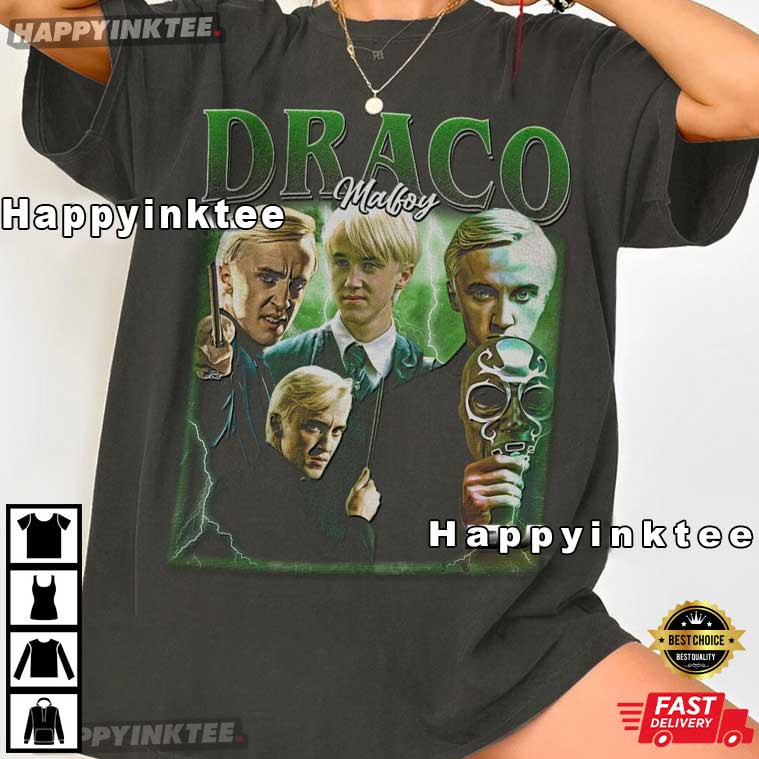 This Draco Malfoy Slytherin Wizard Vintage Bootleg Graphic T-Shirt is made for fans who love the darker, more mysterious side of the wizarding world. Whether you’re wearing it to a convention, a marathon of movies, or just to show off your house pride, this type of t-shirt makes you stand out right away.