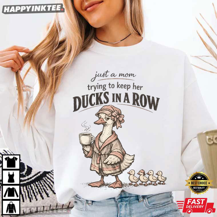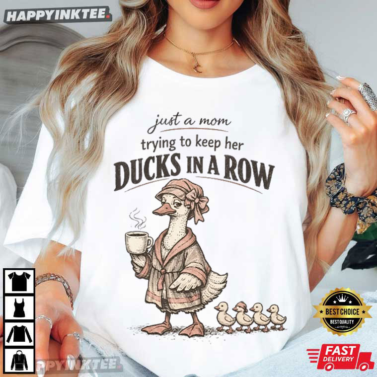 Duck Mom Just A Mom Trying To Keep Her Ducks In A Row T-Shirt – personalized t shirts for mother’s day, custom t shirts for mother’s day, happy mother’s day shirt ideas, best mothers day shirt, mother’s day shirts for mom and daughter