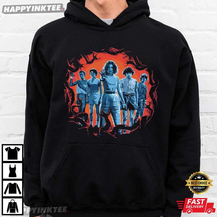 Step straight into the eerie world of Hawkins with this Eleven Friends Upside Down Stranger Things 80s Horror TV Show T-Shirt, inspired by one of the most iconic sci-fi horror series of the decade. This Stranger Things T shirt is designed for fans who grew attached to the characters and the emotional journey across seasons, from escaping the Demogorgon to confronting Vecna.