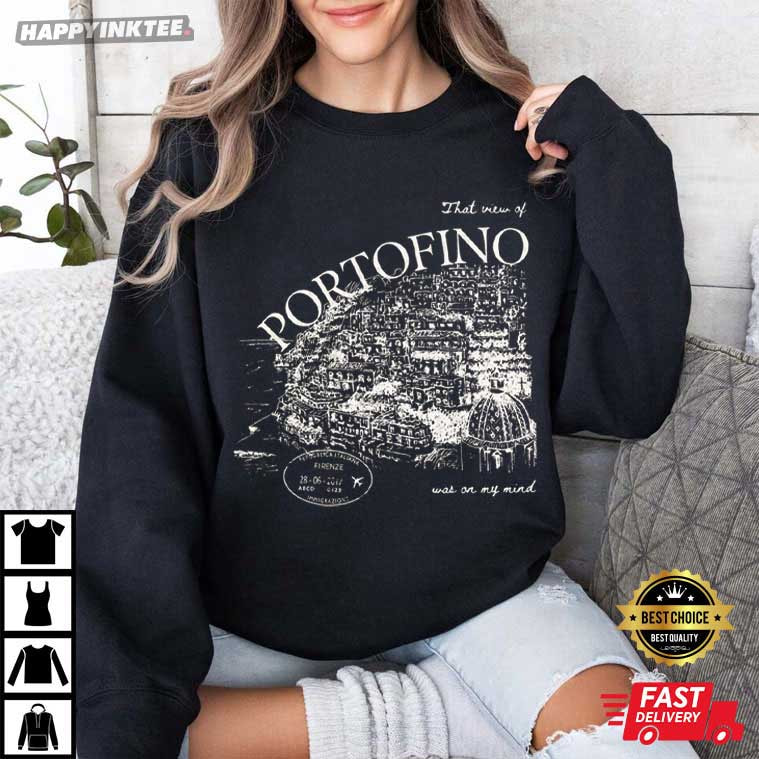 Step into old-world glamour with this Elizabeth Taylor That View of Portofino Showgirl TS Inspired T-Shirt. Featuring a dreamy sketch of the Portofino coastline and elegant script typography, this shirt captures the allure, mystique, and nostalgic appeal of Italy’s famous coastal town. Inspired by the Showgirl aesthetic loved by Swifties, the same narrative energy—wistful, romantic, and shamelessly classic—is channeled in this work.