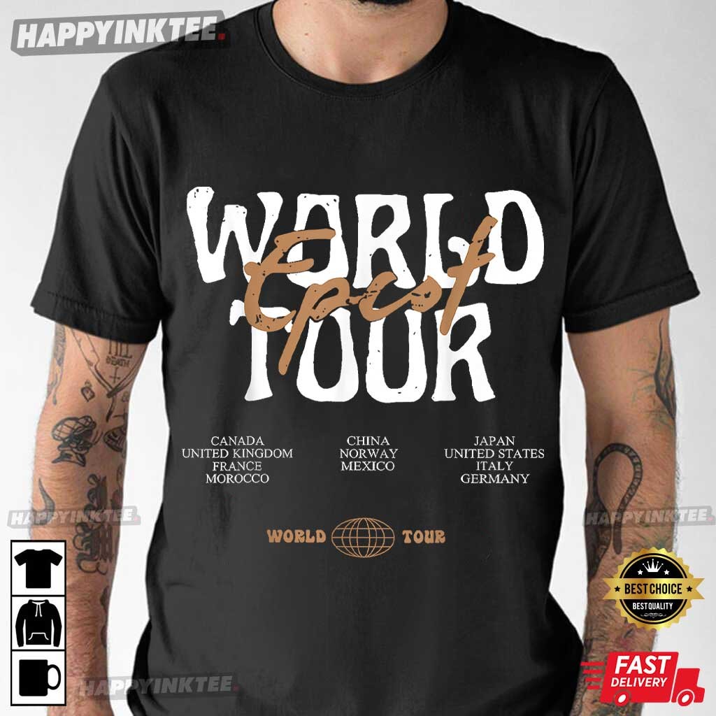 This Epcot World Tour Drink Around the World Drinking T-Shirt honors the legendary Epcot World Showcase experience and is ideal for theme park and travel aficionados.