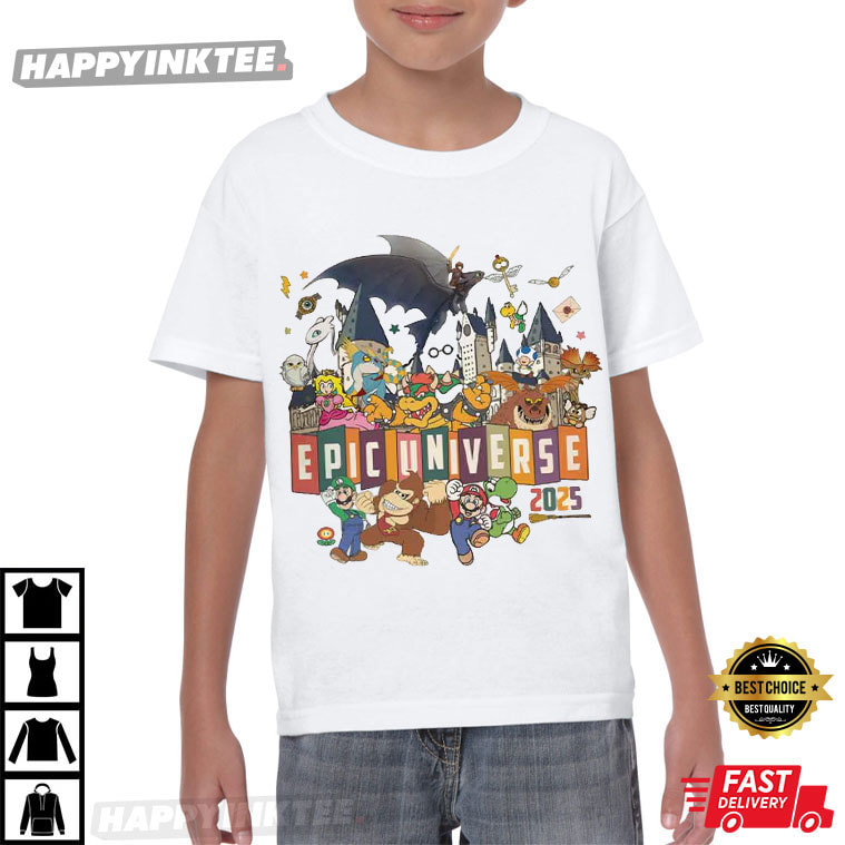 Ready to wear your theme park obsession loud and proud? The Epic Universe 2025 Orlando Park Cartoon T-Shirt is your ticket to celebrating Universal’s newest adventure in style.