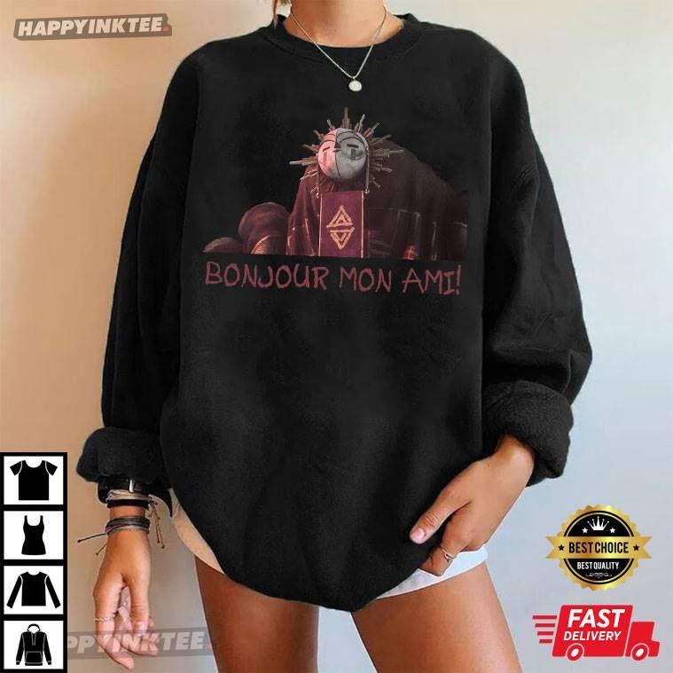 “Bonjour Mon Ami” captures the vibe of the game’s lovable character Esquie, who welcomes players with a friendly touch in a mysterious world. Our Expedition 33 shirt is just what fans need to show off their love for the game and its cool vibe.