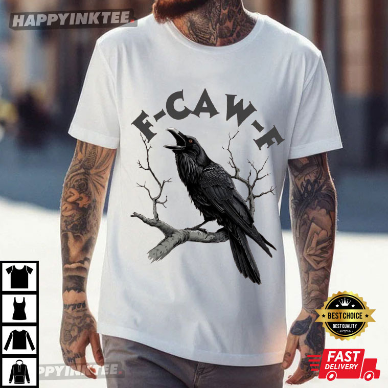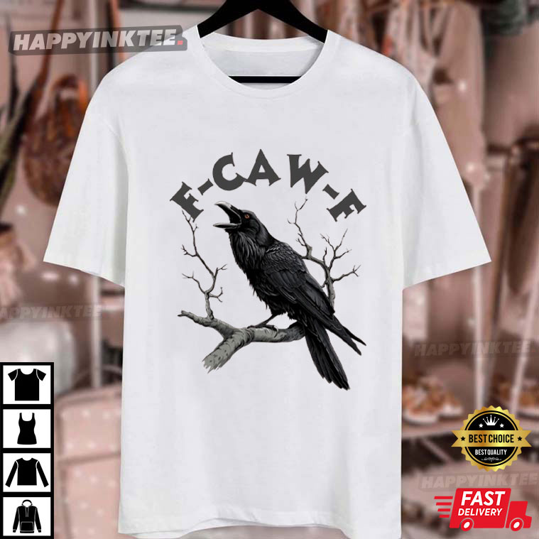 The design shows a striking black crow sitting on a bare branch, mid-caw, with the playful phrase “F-Caw-F” above it. No matter if you take it as a bird’s squawk or a cheeky comment, this Raven lover shirt is sure to get some laughs and grab attention.