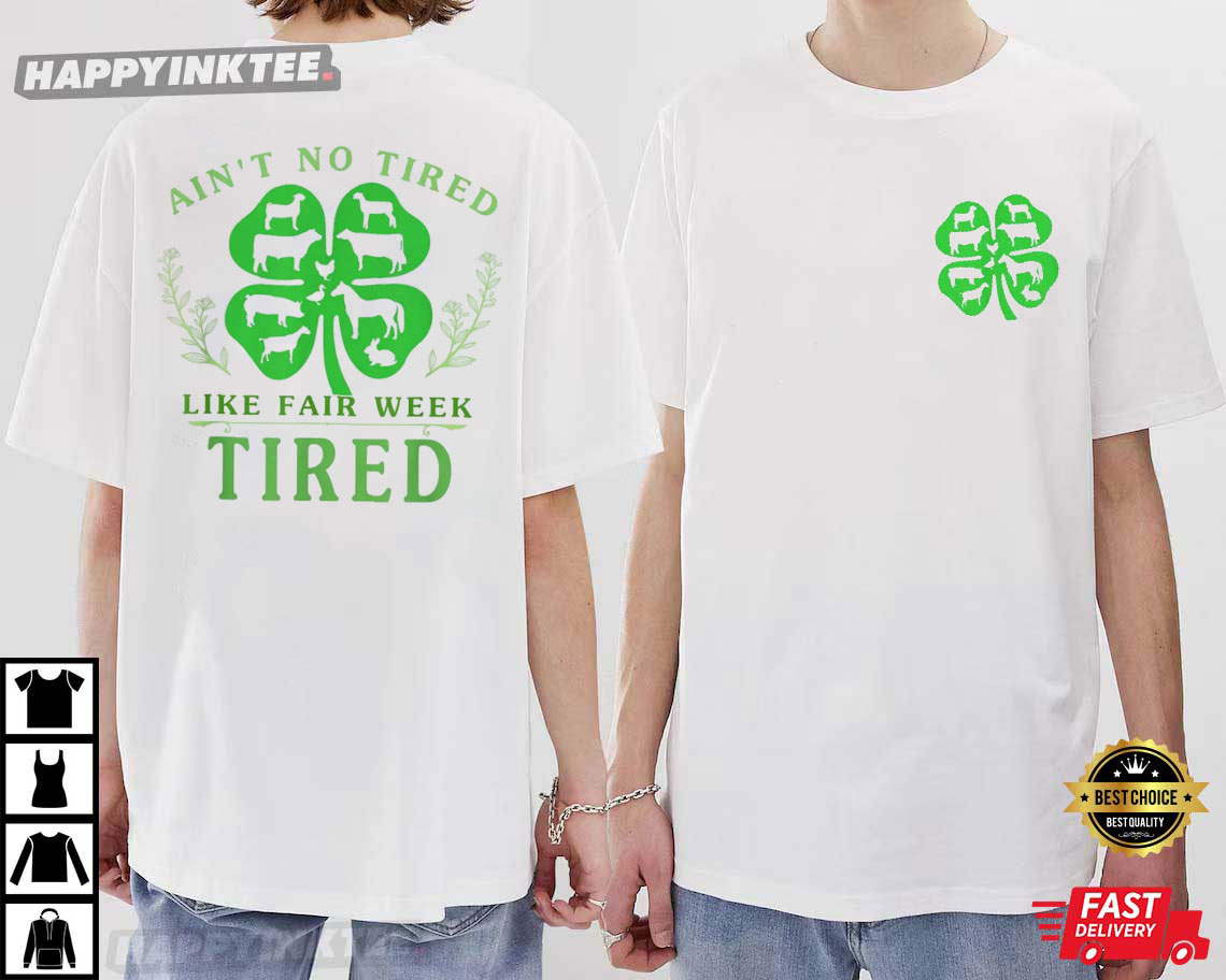 Get ready to laugh about farm life with the Fair Week Tired T-Shirt – the perfect tee for 4-H kids, FFA members, farmers, and anyone who totally gets the hustle of livestock shows and county fairs. It has a green clover packed with farm animals like cows, pigs, and sheep, and it says, “Ain’t No Tired Like Fair Week Tired.” It totally nails the mix of exhaustion and pride that hits during country fair season.