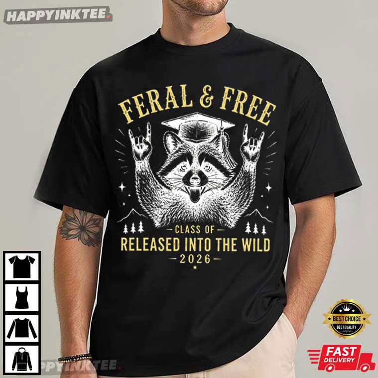 Feral And Free Raccoon Custom Class of 2026 Released Into the Wild T-Shirt – vintage graphic t shirts, unique graphic t shirts