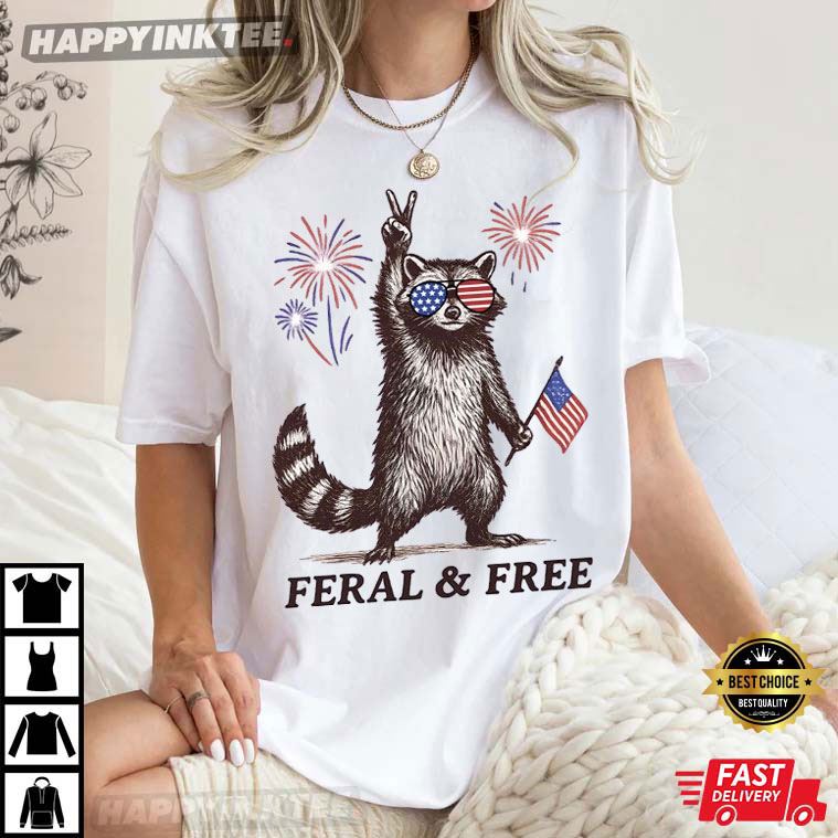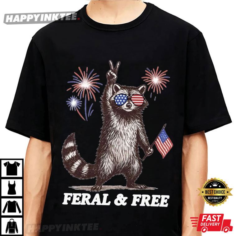 Get ready to show off your wild side and enjoy the freedom vibes with our Feral And Free Raccoon Funny 4th of July T-Shirt!