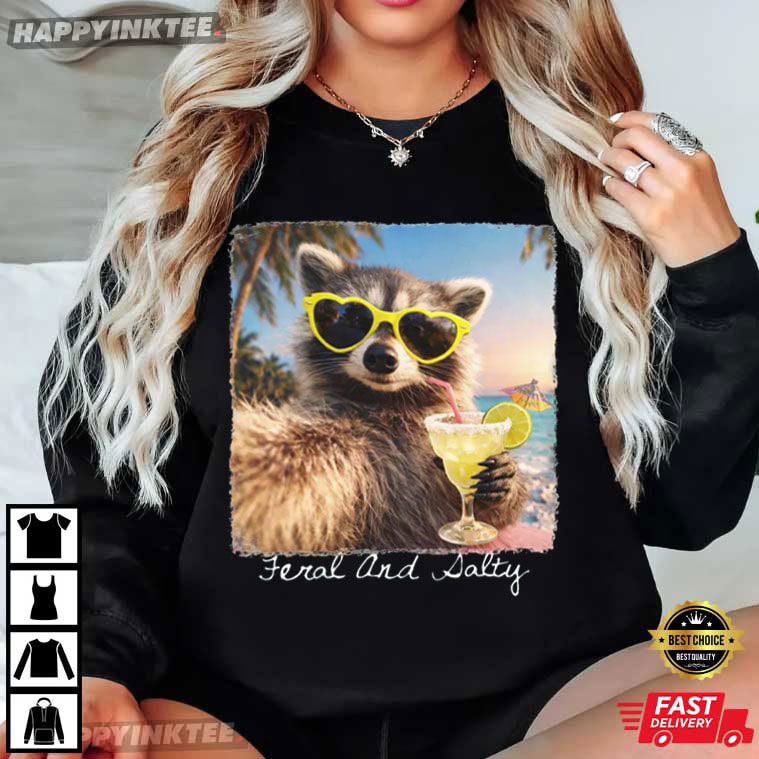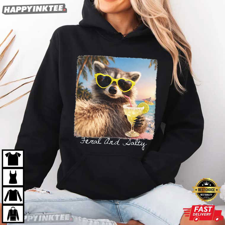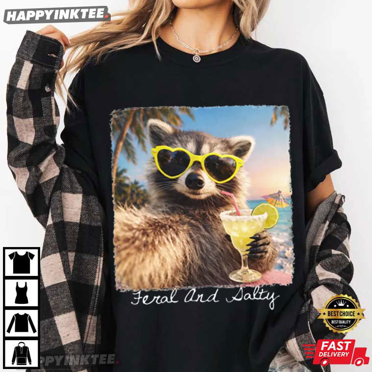Feral And Salty Raccoon Sunglasses Cocktail Summer Beach T-Shirt – vintage graphic t shirts, unique graphic t shirts