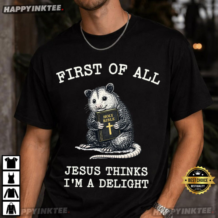 Faith doesn’t always have to be serious—Occasionally, it manifests as a smile. The First of All Jesus Thinks I’m a Delight Opossum Holy Bible Christian T-Shirt creates a design that is both uplifting and truly relevant by fusing playful comedy with deeply held beliefs.