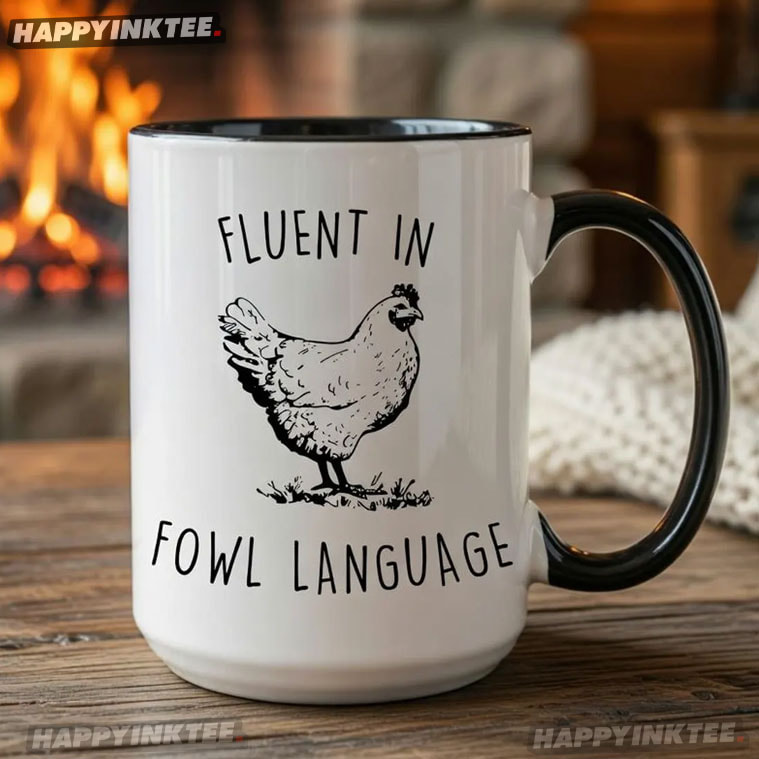 Fluent In Fowl Language Funny Chicken Mug – christmas mugs, xmas mugs, glass cups, custom cups, custom coffee mugs, funny coffee mugs