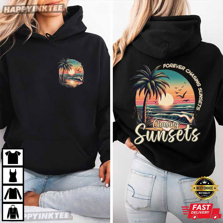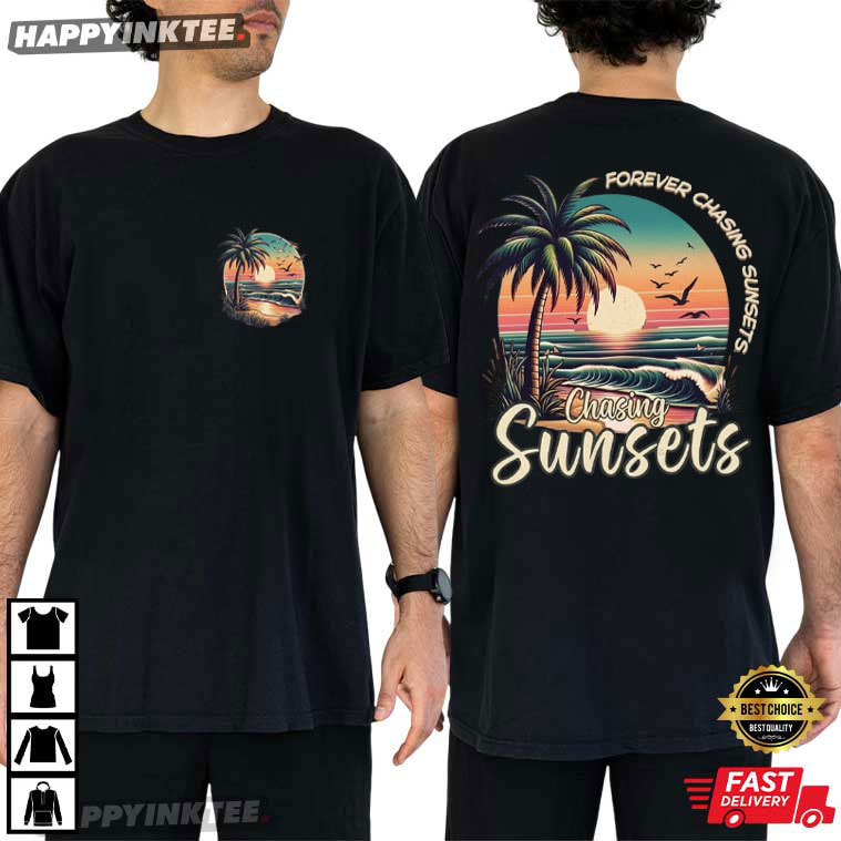 Forever Chasing Sunsets Retro Palm Tree Tropical Summer Beach T-Shirt – vintage graphic t shirts, unique graphic t shirts