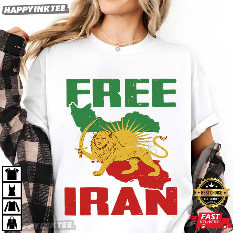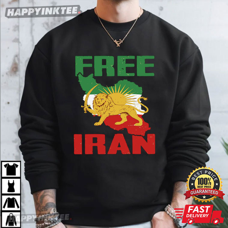 Free Iran Lion And Sun Flag Political Protest T-Shirt – vintage graphic t shirts, unique graphic t shirts