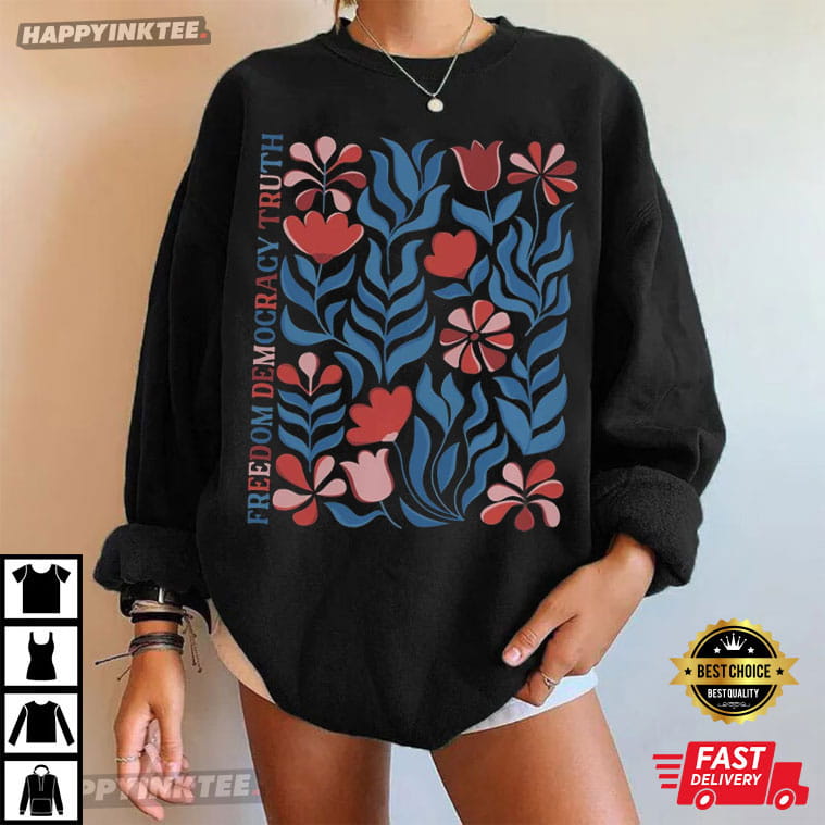 This shirt has a mild anti-Trump edge that goes along with the values of Democracy T-Shirt. The flowers and the word “TRUTH” suggest a fight against divided politics, and the comedy in the subtle rebellion shows that freedom looks good with a smile. Wear it to support democracy with a wink.