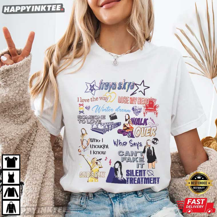Bright, expressive, and packed with references fans instantly recognize, the Freya Skye Songs Stars Disney Descendants Zombies World Tour T-Shirt feels like a wearable scrapbook of modern Disney pop culture — It’s designed for fans who’ve grown up singing along, replaying favorite scenes, and following the rise of a new generation of Disney stars. This Freya Skye tee blends music, TV nostalgia, and tour-style energy into one bold graphic that feels fun, emotional, and totally fan-driven.