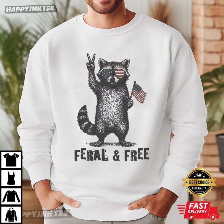 Our Funny 4th Of July Feral And Free Raccoon T-Shirt will help you celebrate your freedom with a bit of wild style! This is a great way to describe the wild and independent nature of both animals and the American personality.