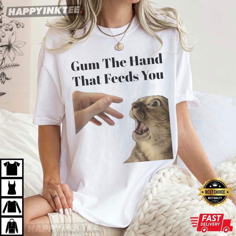 Show off your cat-loving attitude with our Funny Gift For Cat Owner Animal Humor T-Shirt! It totally nails the classic, a bit sassy, and super funny vibe of cats, making it super relatable for all cat owners out there. A funny spin on the saying “bite the hand that feeds you,” adding a surprising and humorous twist.