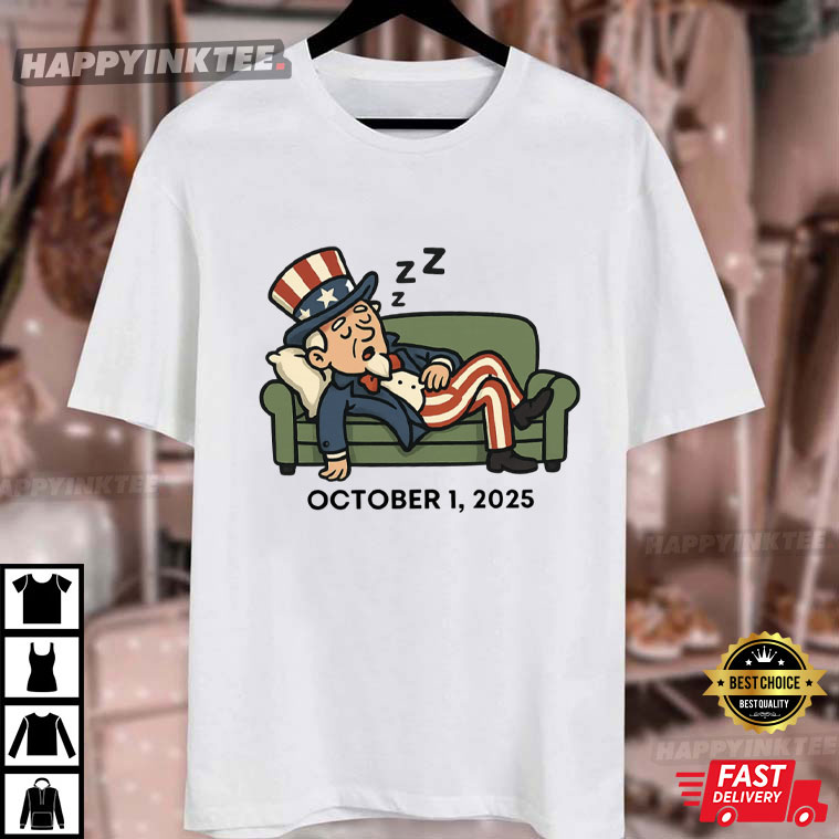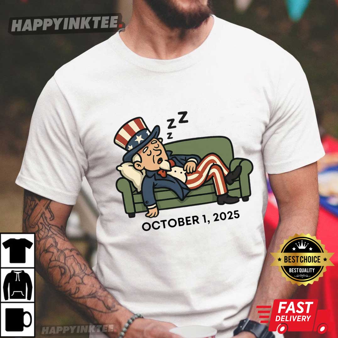 Funny Government Shutdown Uncle Sam Sleeping October 1 2025 T-Shirt – t shirt printing, custom tee shirts
