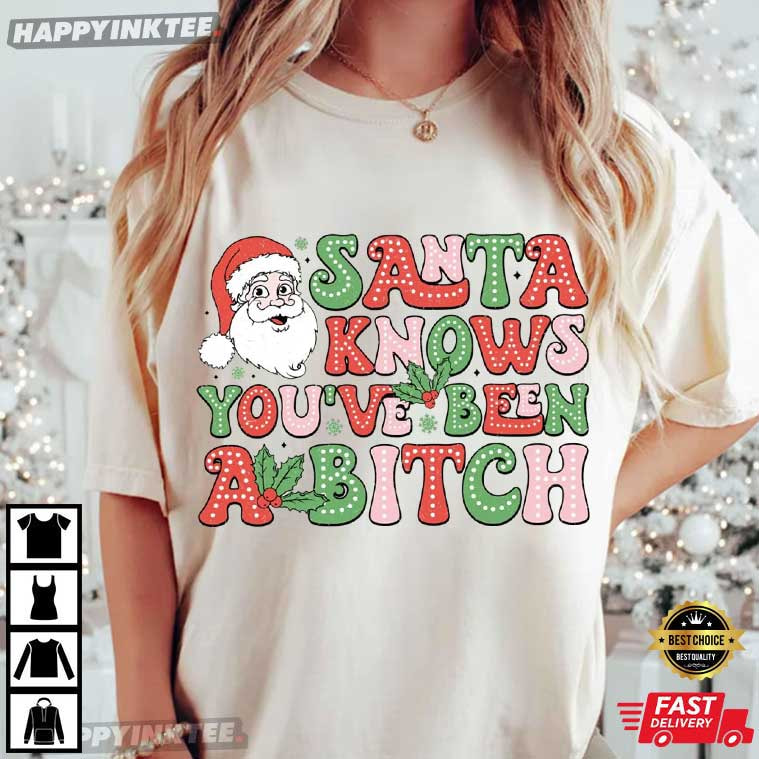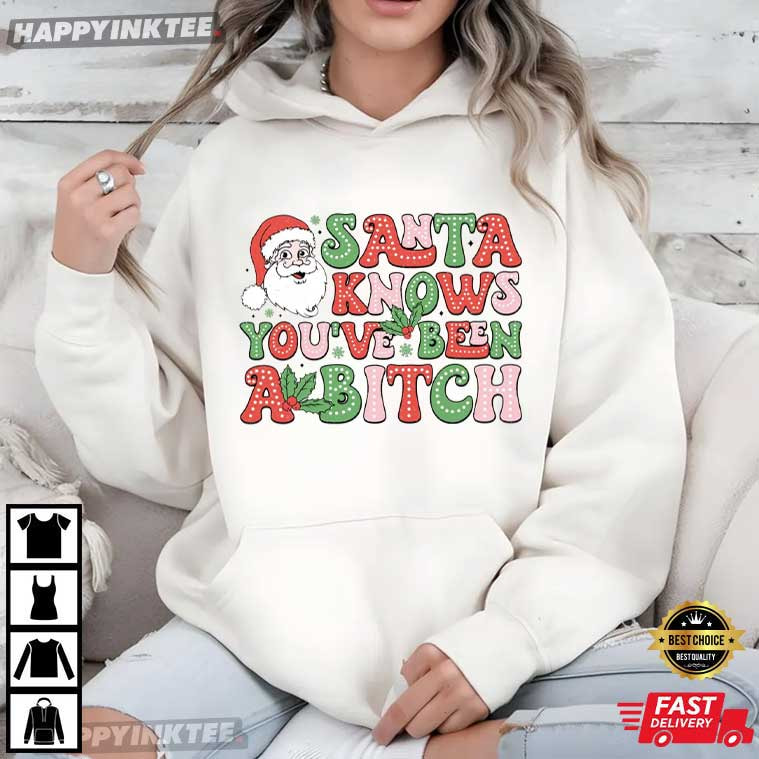 Funny Santa Knows You've Been A Bitch Sarcastic Christmas T-Shirt – funny christmas shirts, christmas sweat shirts