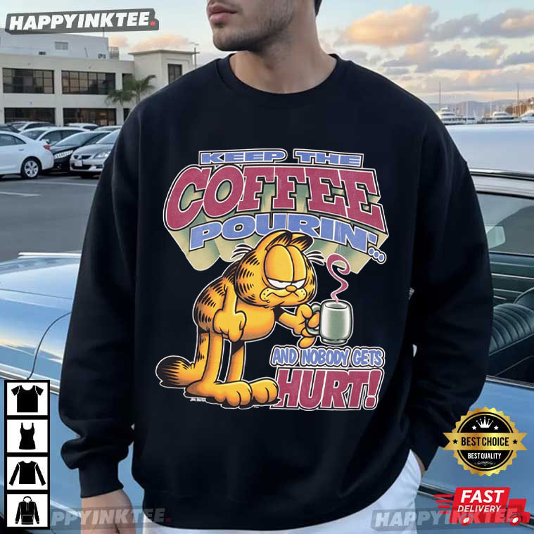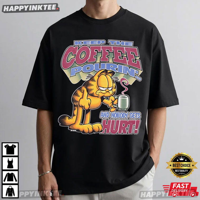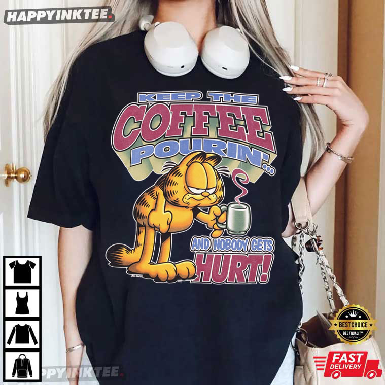 Garfield Keep The Coffee Pouring And Nobody Gets Hurts T-Shirt