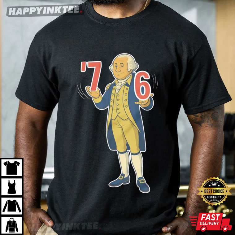 This funny George Washington 6-7 7-6 T-Shirt shows a fun cartoon of the first U.S. president juggling the numbers ‘7’ and ‘6’, giving a cool shoutout to 1776—the year America declared independence.
