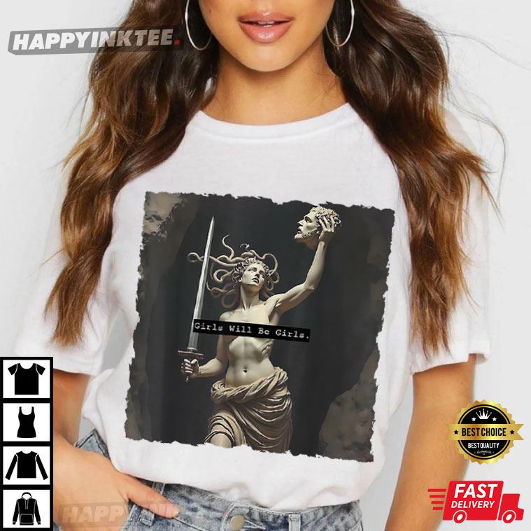 Girls Will Be Girls Medusa Feminist Gift T-Shirt – t shirt printing, custom tee shirts