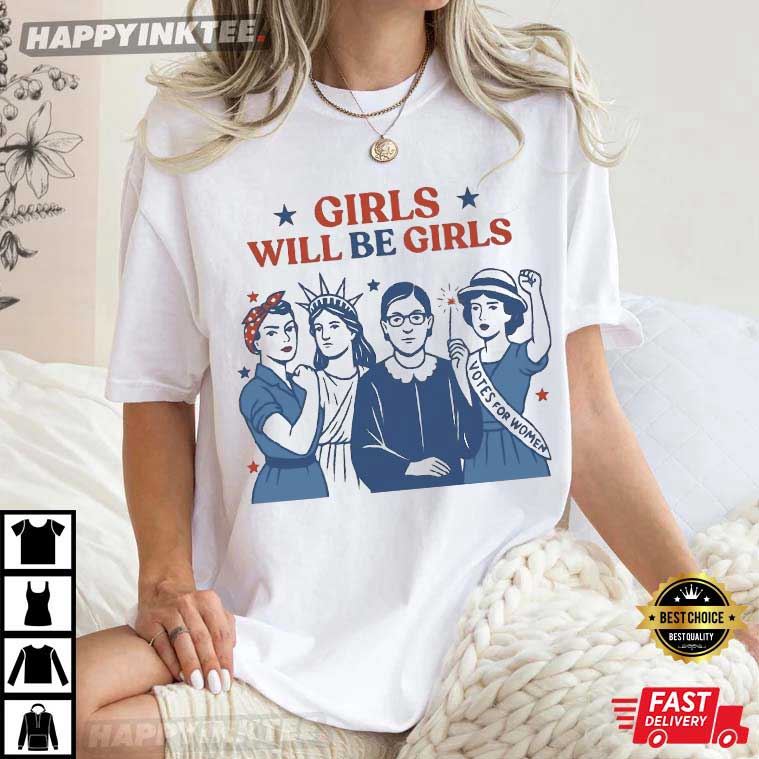 Girls Will Be Girls Patriotic Feminist 4th of July T-Shirt – 4th of July shirts