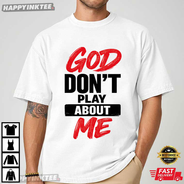 The God Don’t Play About Me Christian Faith Religious T-Shirt is a powerful declaration of belief, strength, and divine protection. With striking red and black typography on a clean white background, this design delivers its message with confidence and clarity— no explanation needed.