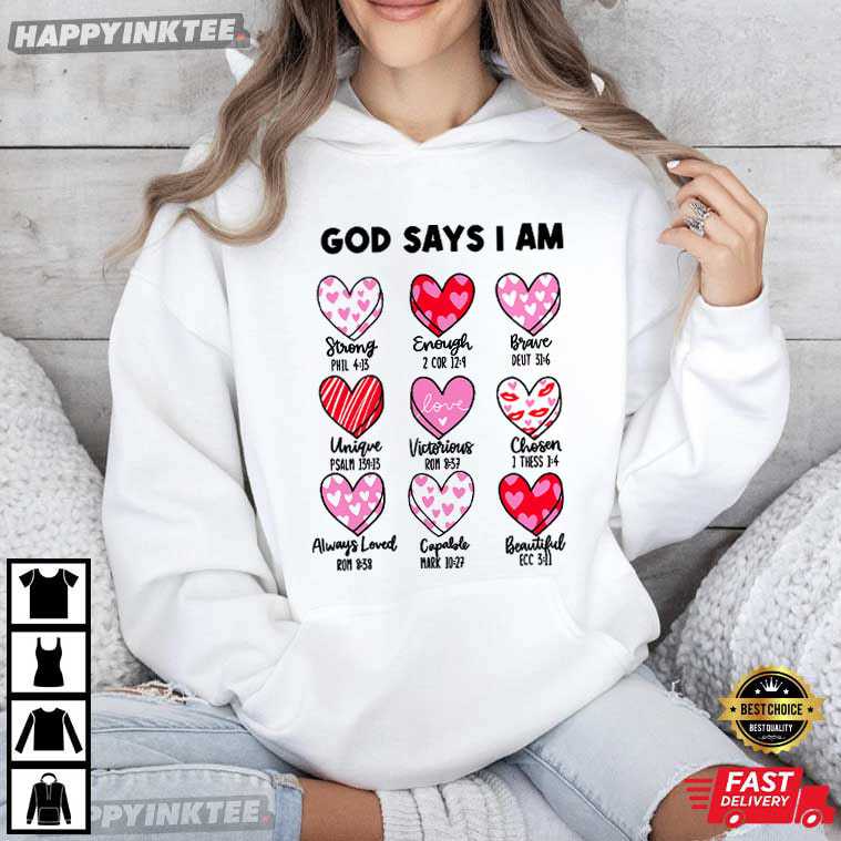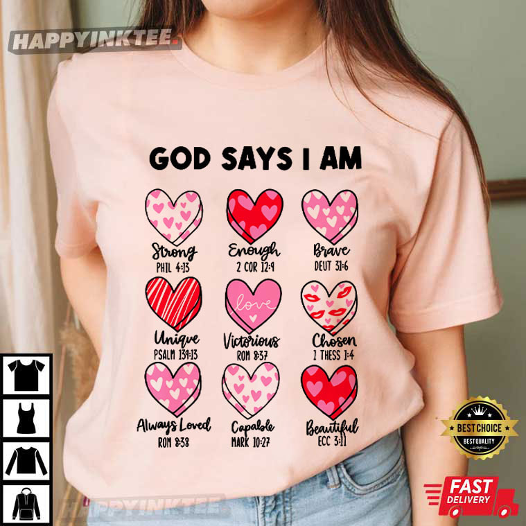 God Says I Am Valentines Day Christian Bible Verse T-Shirt – valentine graphic shirts, couples shirts valentines day