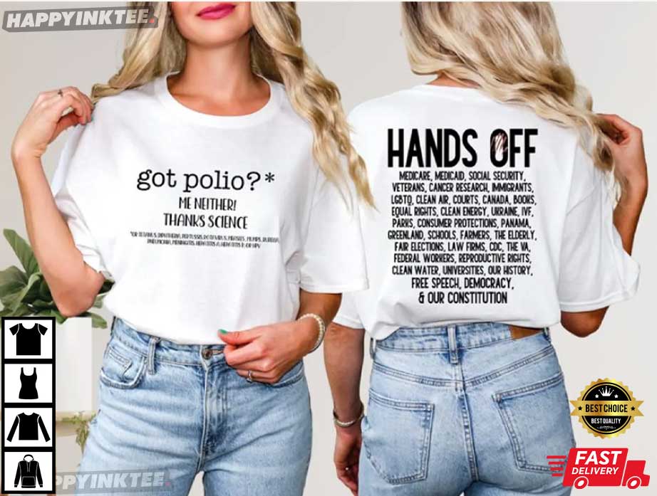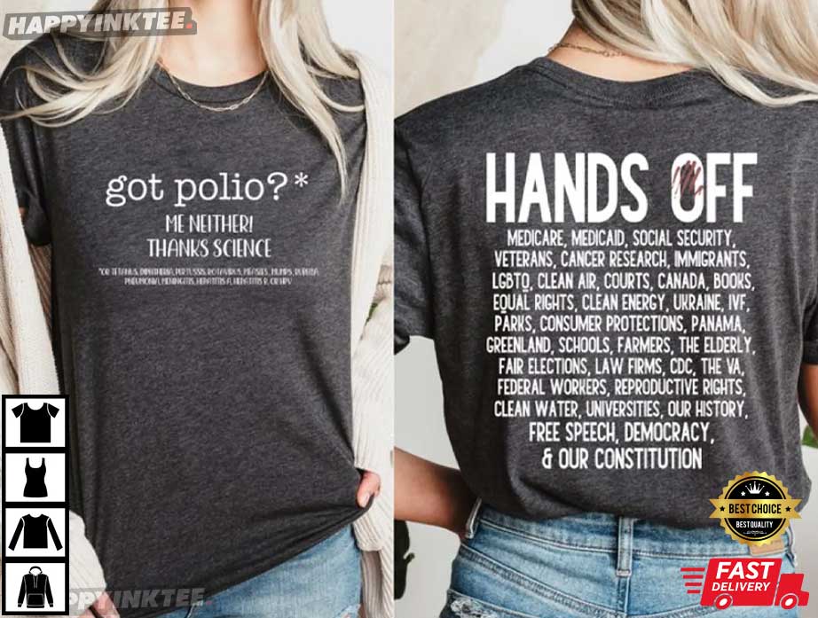 Make your voice heard with the Got Polio Me Neither Thanks Science Hands Off Protest T-Shirt. The front has a funny but strong message: “Got Polio?” Not me either! “Thank you, science.” It’s a little nudge about how vaccines and medical research can totally save lives, mixing some laughs with the real deal.