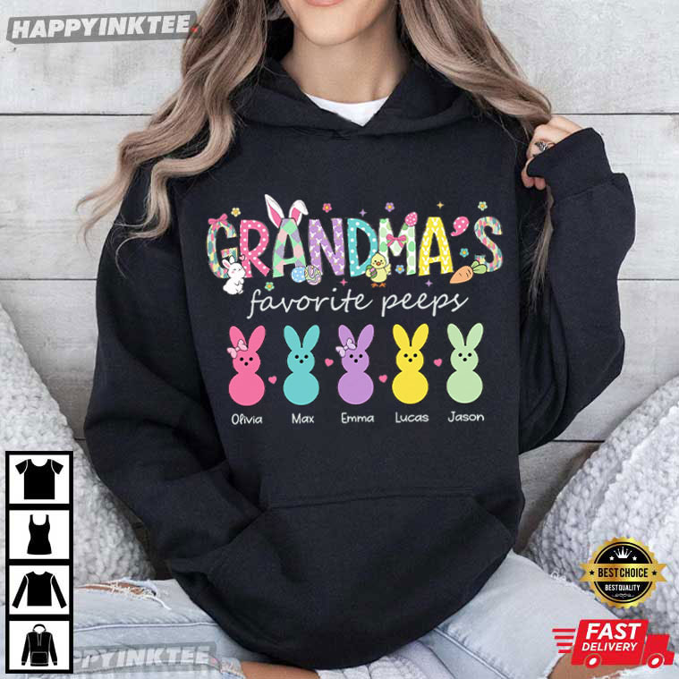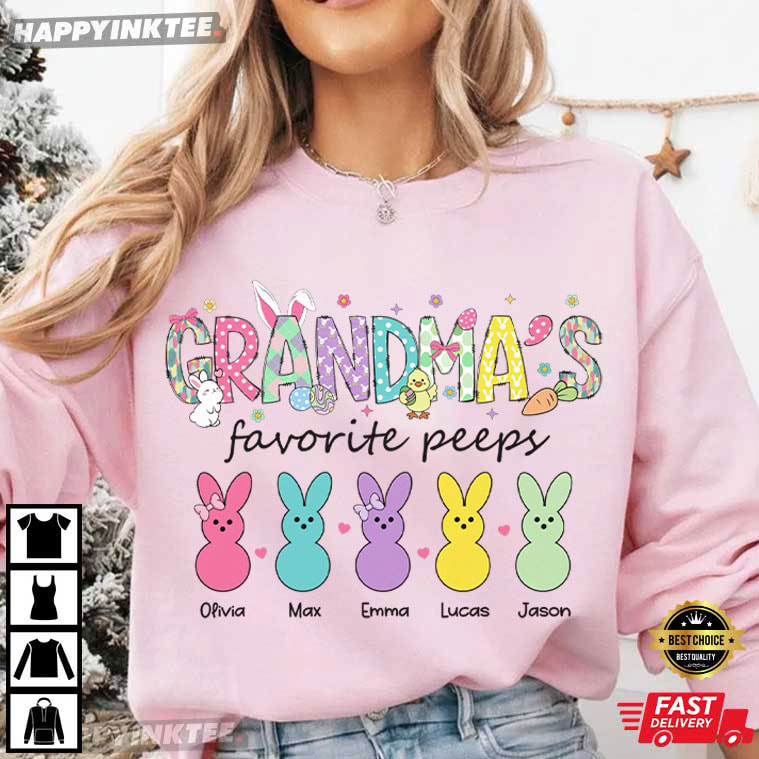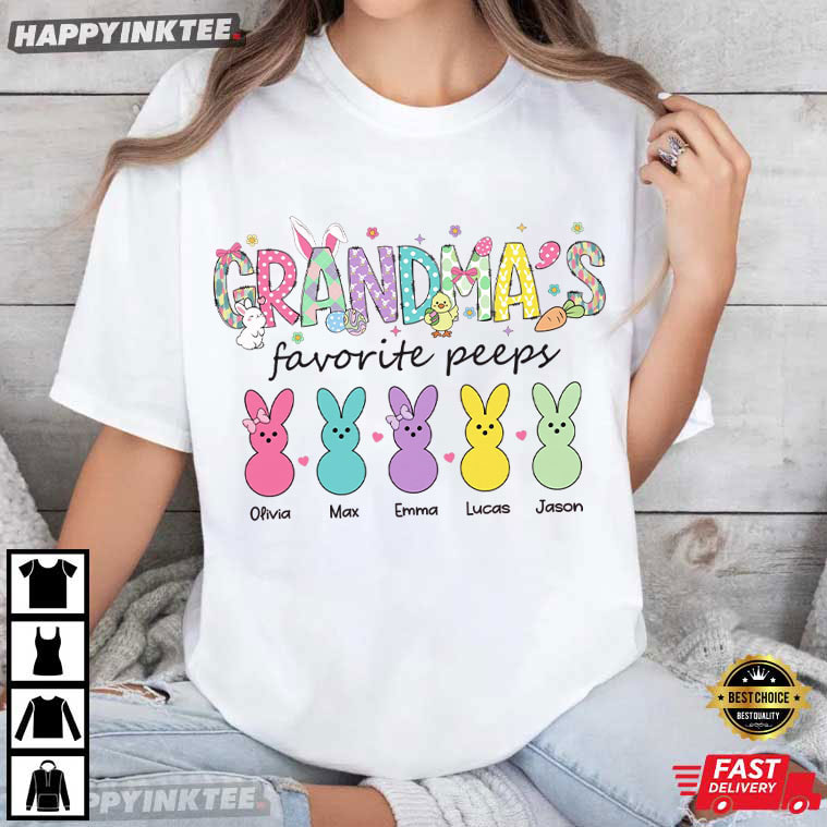 Grandma's Favorite Peeps Easter Custom Grandkids Names T-Shirt – vintage graphic t shirts, unique graphic t shirts