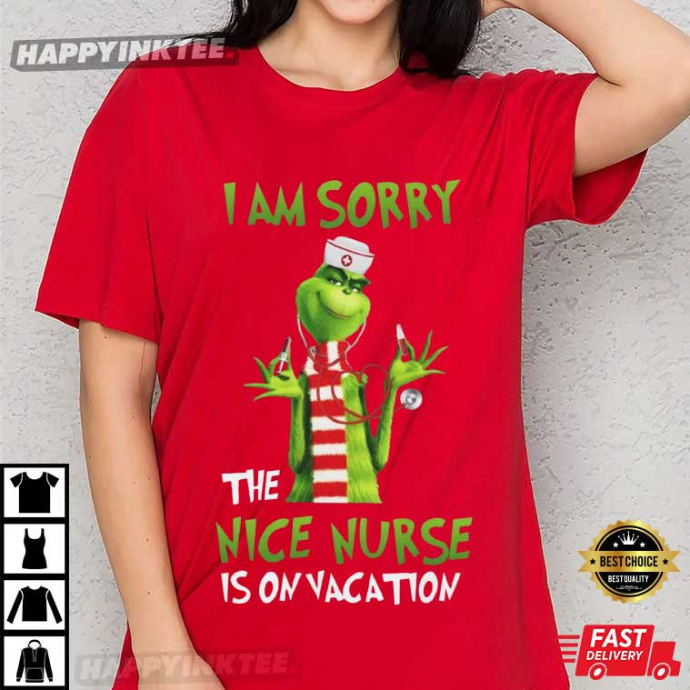 Grinch I Am Sorry The Nice Nurse Is On Vacation Nursing Gifts T-Shirt – funny christmas shirts, christmas sweat shirts
