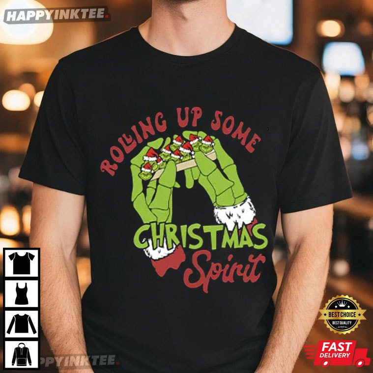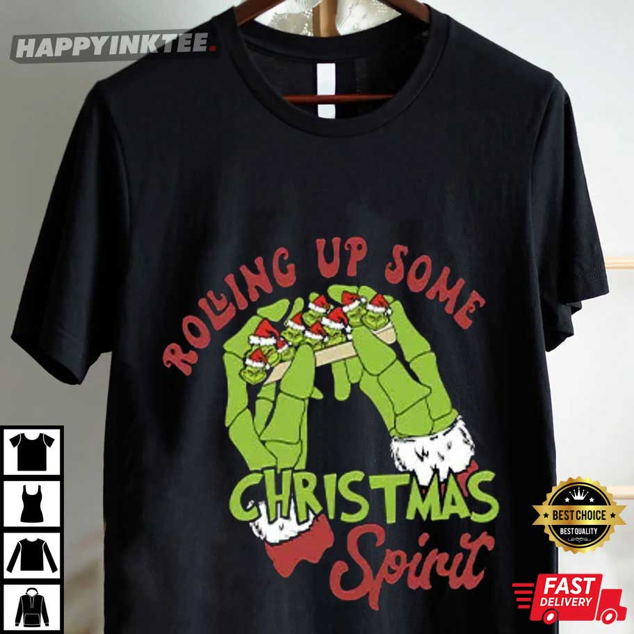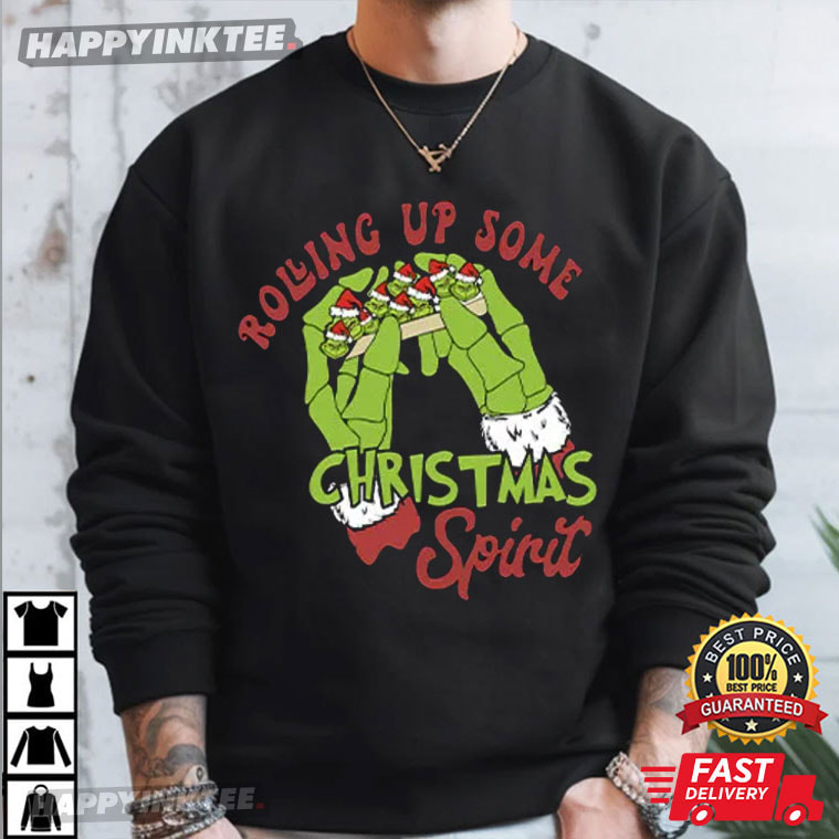 Grinch Rolling Up Some Christmas Spirit Merry Grinchmas T-Shirt – funny christmas shirts, christmas sweat shirts