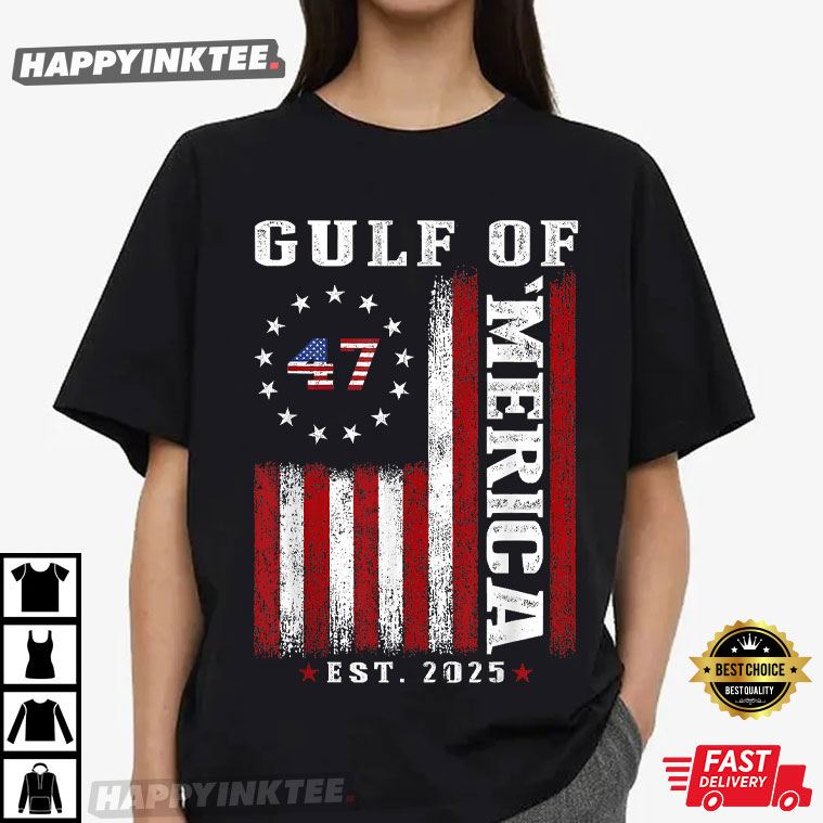 Gulf Of Merica Est 2025 US Flag Patriotic T-Shirt – t shirt printing, custom tee shirts