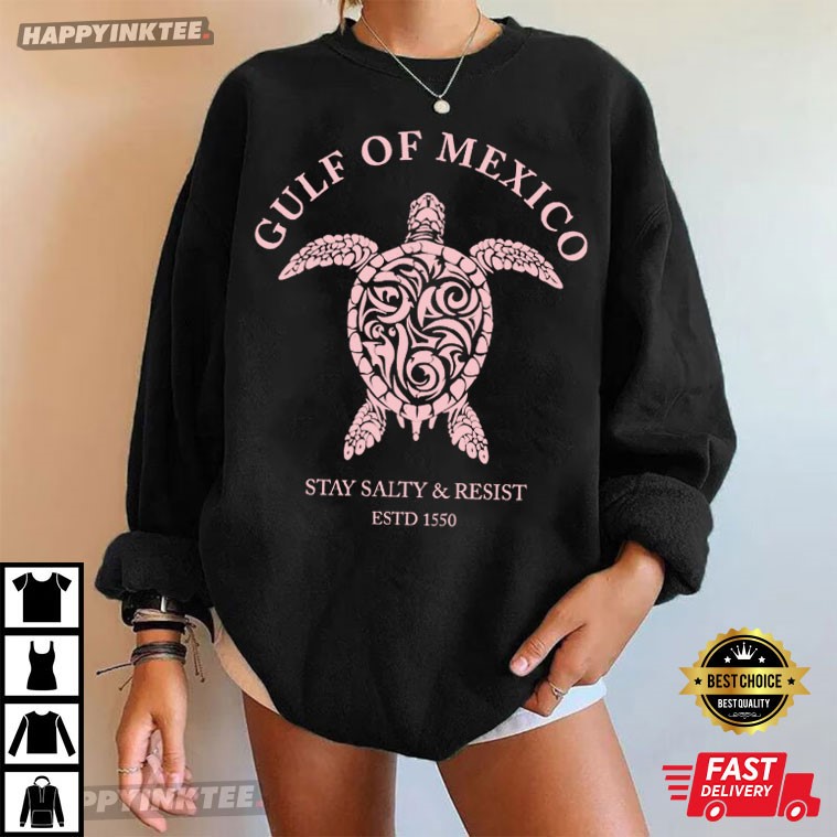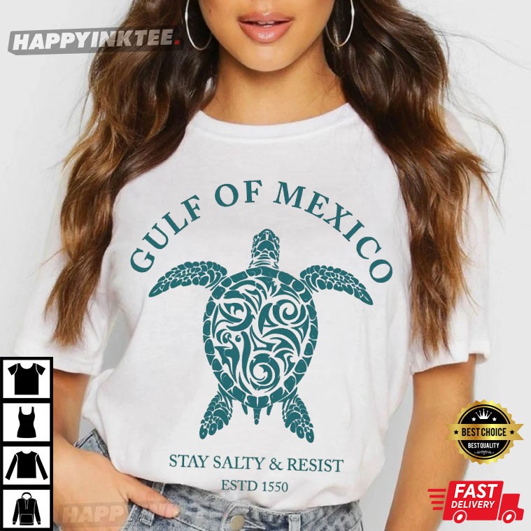 Get ready to ride the waves of style with the Gulf Of Mexico Stay Salty And Resist ESTD 1550 Turtle T-Shirt!