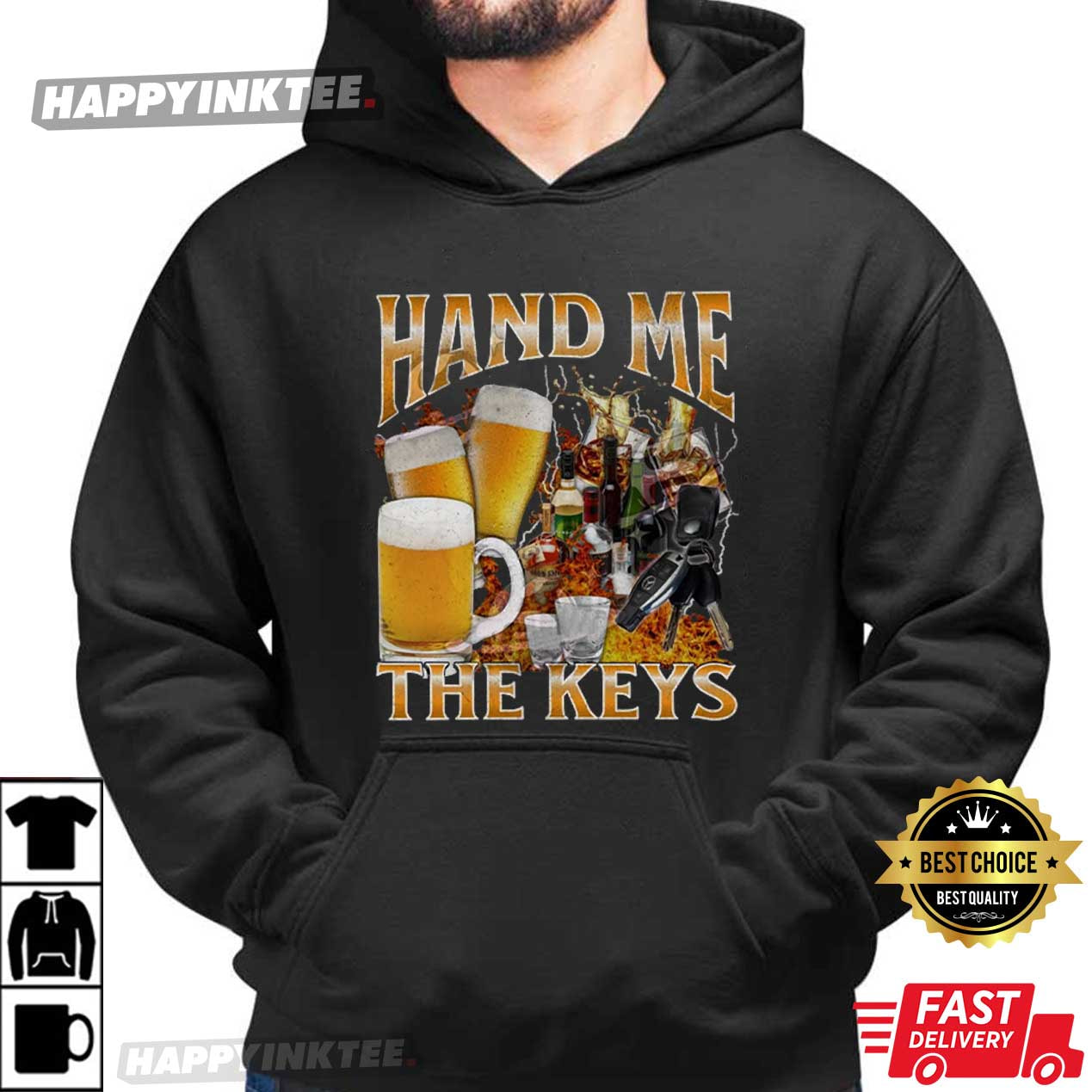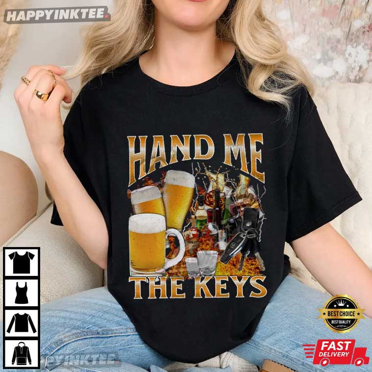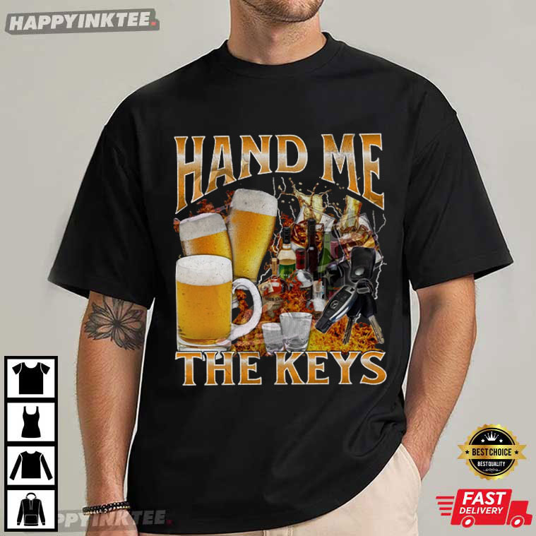 Hand Me The Keys Funny Beer Alcoholic Meme Bootleg Graphic T-Shirt – vintage graphic t shirts, unique graphic t shirts