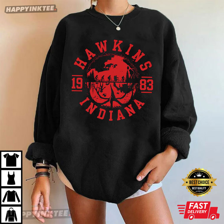 With the Hawkins Indiana 1983 Upside Down Stranger Things Movie Lover T-Shirt, you may travel back to the year it all started. Inspired by the world of Stranger Things, this shirt features a bold Hawkins, Indiana emblem paired with the iconic year 1983, the moment the town’s quiet surface first cracked open. For devoted viewers, “Hawkins 1983” symbolizes camaraderie, intrigue, and the beginning of a tale that shaped a generation of science fiction television — It is more than just a date or location.