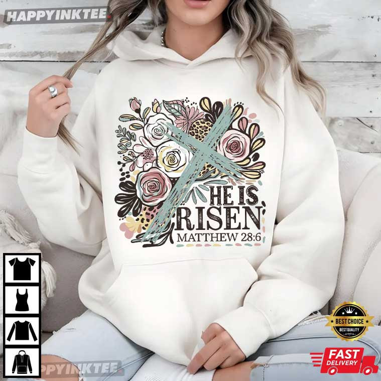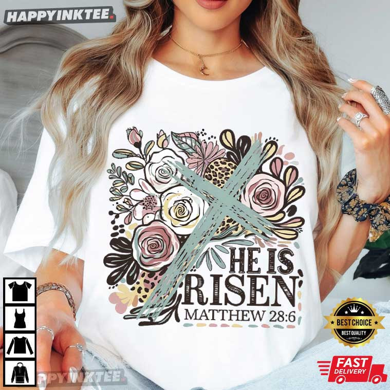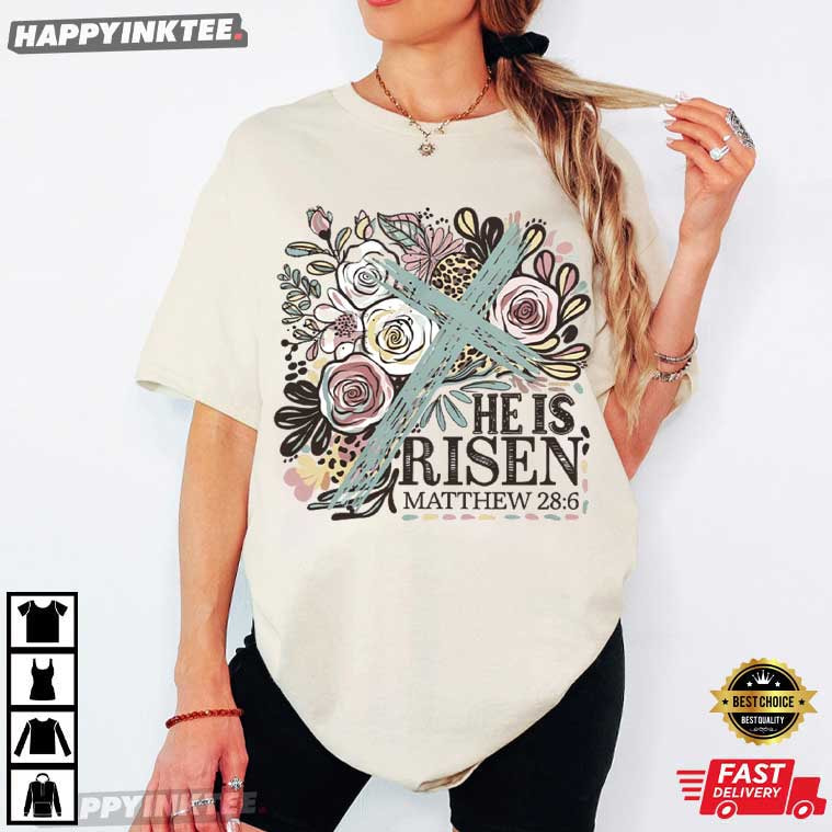 He Is Risen Easter Spring Floral Christian Bible Verse T-Shirt