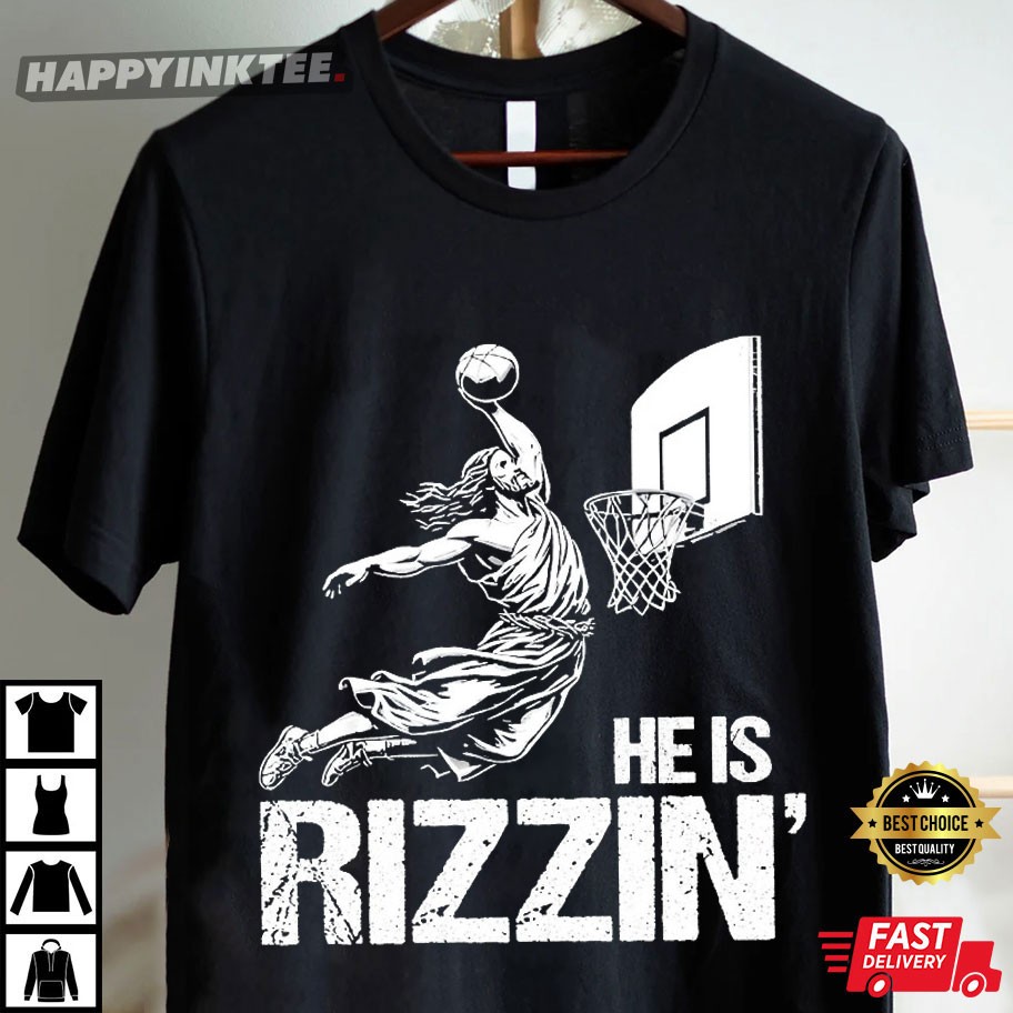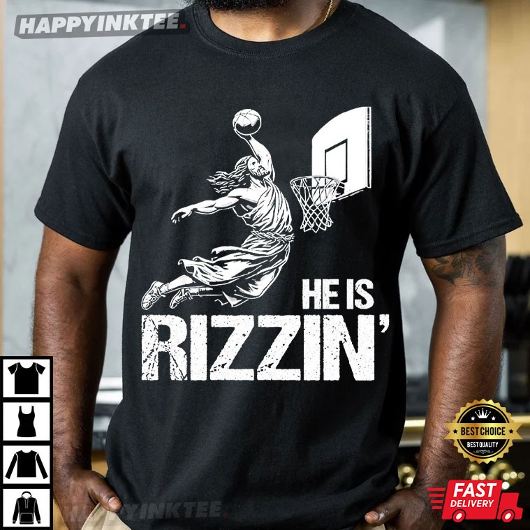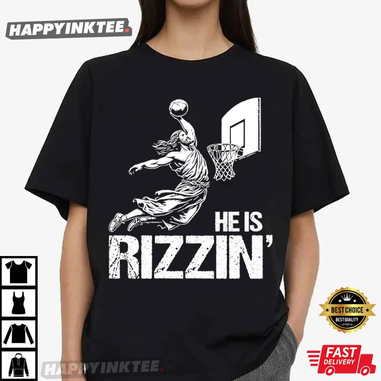 He Is Rizzin Funny Jesus Playing Basketball T-Shirt – retro graphic t shirts, unique graphic t shirts, retro tee shirts, vintage 80s t shirts