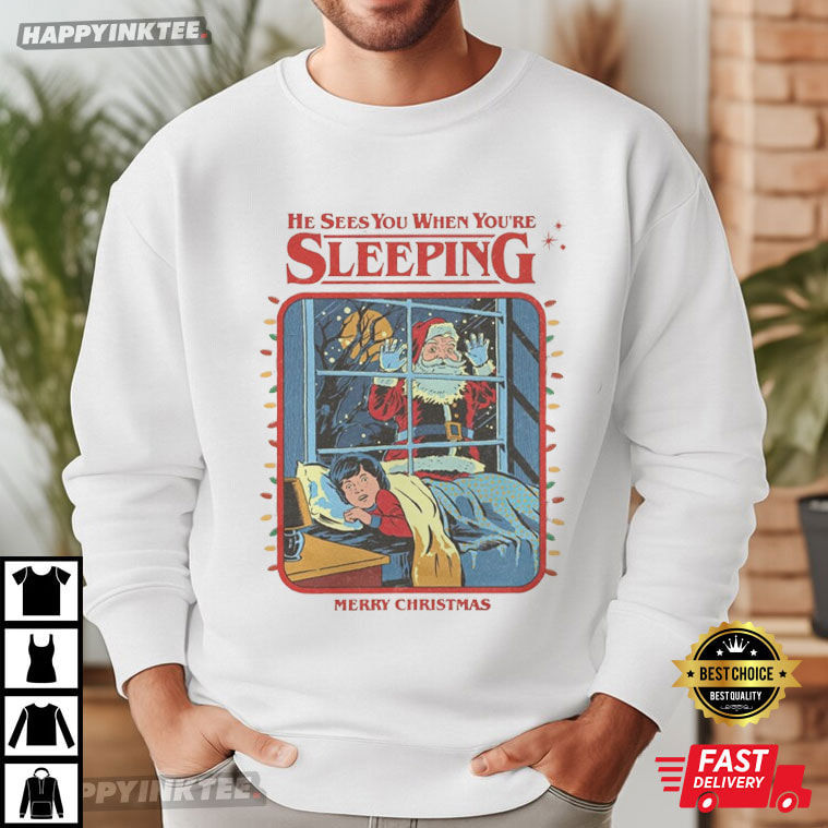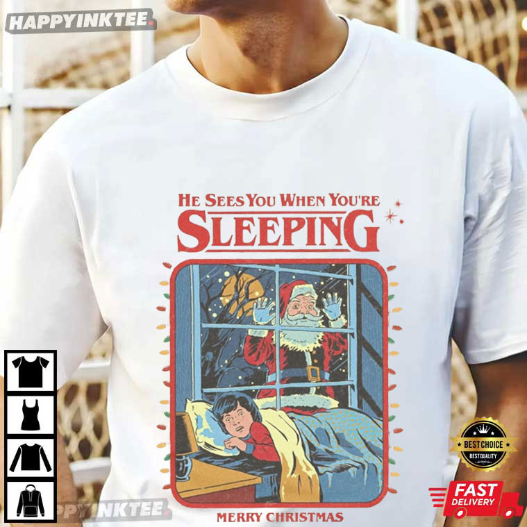 He Sees You When You're Sleeping Creepy Santa Claus Christmas T-Shirt – funny christmas shirts, christmas sweat shirts