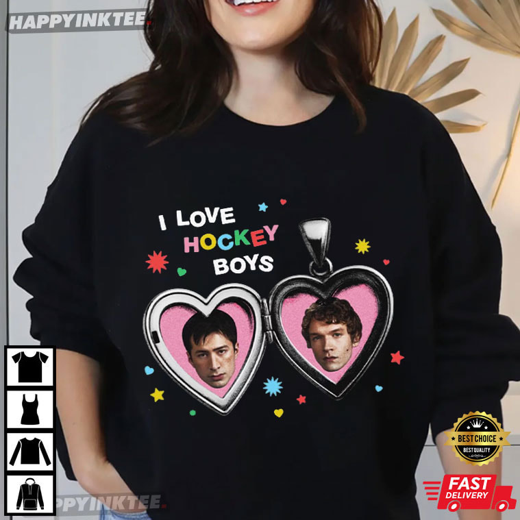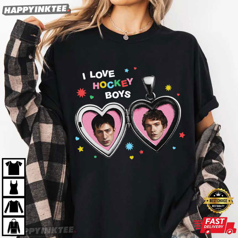 Cute chaos. Hockey hearts. Zero regrets. The Heated Rivalry I Love Hockey Boys Shane Hollander Ilya Rozanov T-Shirt is made for fans who embrace their love for hockey romance loudly, proudly, and with a sense of humor. Featuring heart-locket portraits of Shane Hollander and Ilya Rozanov, this design turns fandom obsession into a sweet, wearable statement.