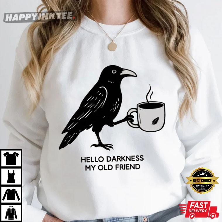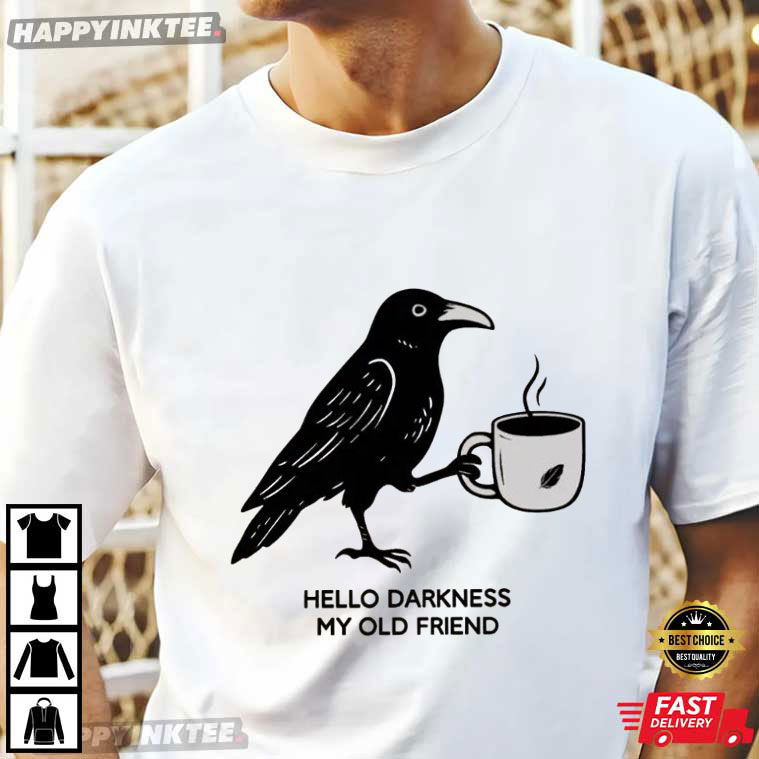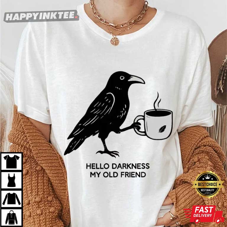 Hello Darkness My Old Friend Raven Crow Coffee Lover Halloween T-Shirt – halloween tee shirts