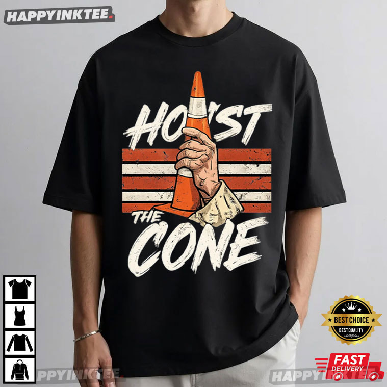 Some moments in baseball become legends. Others become memes. The Hoist The Cone Pittsburgh Pirates Baseball Meme T-Shirt perfectly blends both—turning a quirky, unforgettable fan moment into a bold, wearable statement for true Pittsburgh supporters. The design features a raised hand gripping a traffic cone like a trophy, set against vintage-style stripes that echo classic sports apparel — With a funny twist, it’s a lighthearted parody of winning images, such as raising a championship cup.