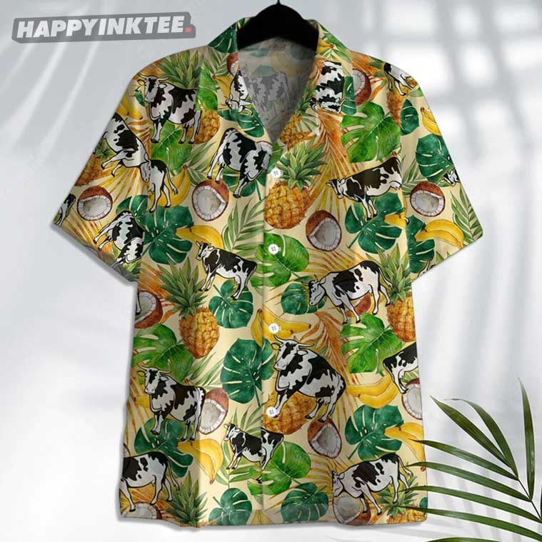 Holstein Friesian Cattle Fruit Pattern Tropical Summer Hawaiian Shirt