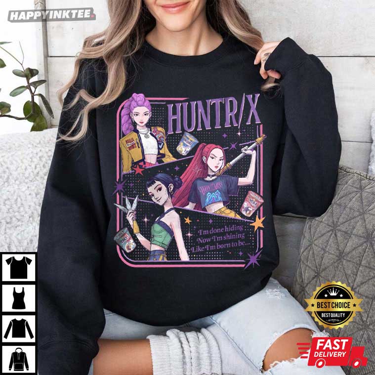 Check out this Huntrix fan tee, perfect for all the true fans of the iconic girl group HUNTR/X in the KPop Demon Hunters scene! It showcases Mira, Rumi, and Zoey rocking their fierce stage and battle-ready styles, mixing K-pop vibes with anime action in a cool, retro look.
