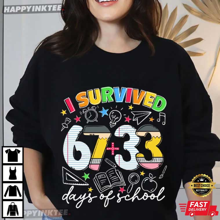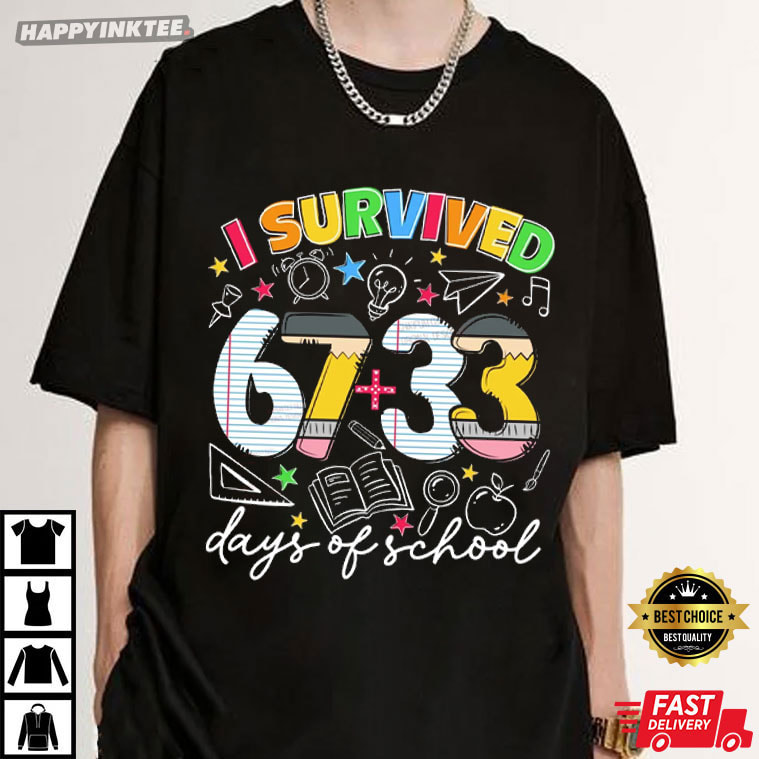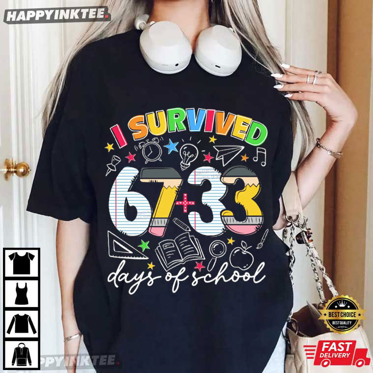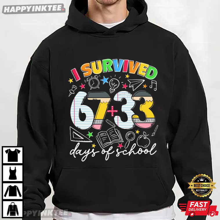The I Survived 67 33 Days Of School Teacher Student Gift T-Shirt is a fun, colorful celebration of making it through the school year— one assignment, test, and early morning at a time. The phrase “I Survived 67 + 33 Days of School” makes it humorous and approachable by incorporating a creative arithmetic twist that immediately relates to classroom life.