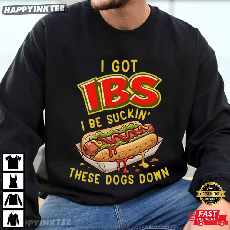 IBS Hot Dog I Be Sucking These Dogs Down Funny T-Shirt – vintage graphic t shirts, unique graphic t shirts