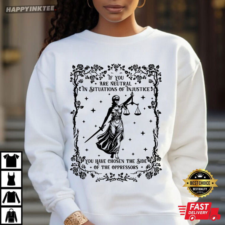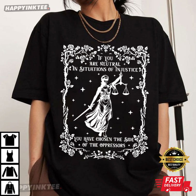 There are some t-shirts that do more than just look good; they say something. The “If You Are Neutral in Situations of Injustice, You Have Chosen the Side of the Oppressor” Liberal Feminist Social Justice T-Shirt is exactly what it sounds like: a bold, unapologetic shirt that stands up for feminism, social justice, and the idea that it’s not okay to stay quiet when you see inequality. This shirt doesn’t just talk; it yells about how important it is to stand up for other people’s rights, no matter what the scenario or who is watching.