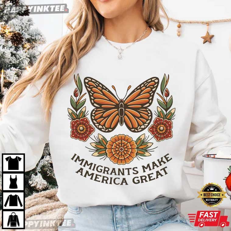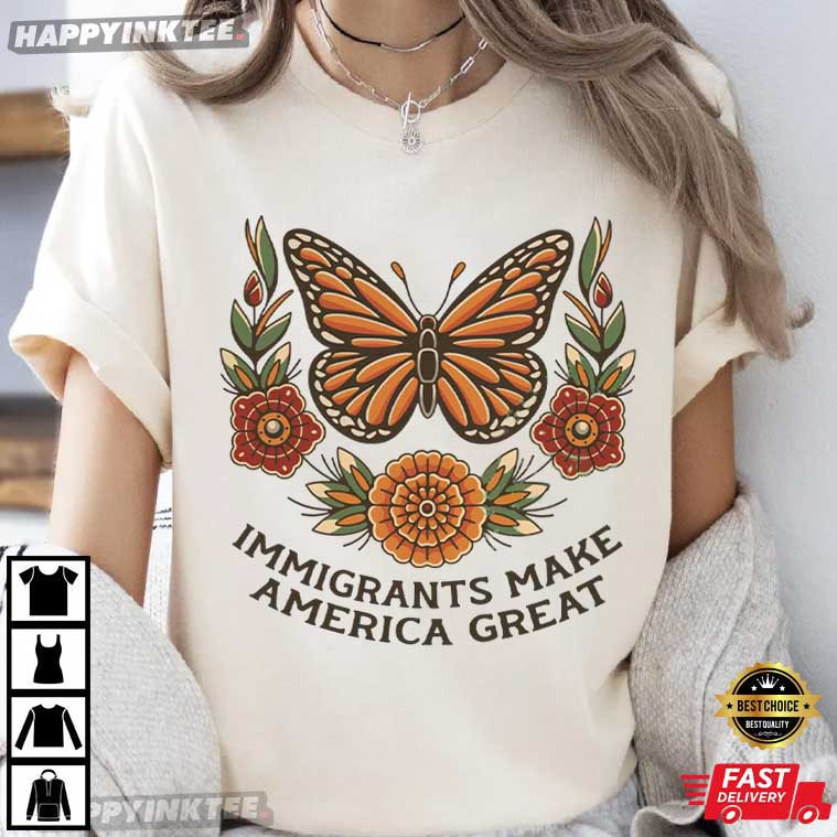 Immigrants Make America Great Monarch Butterfly T-Shirt – vintage graphic t shirts, unique graphic t shirts