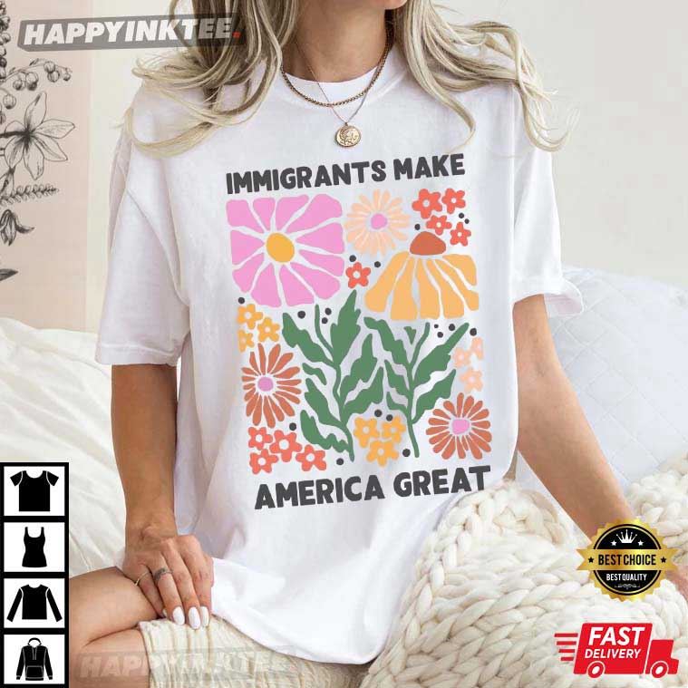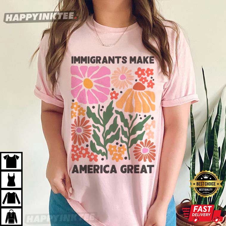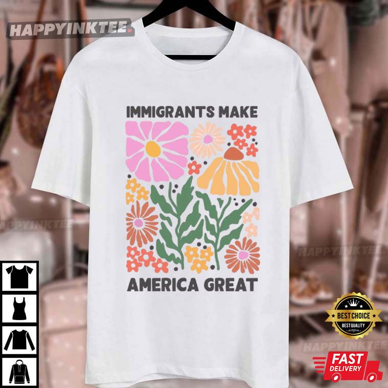 The Immigrants Make America Great Pro Immigrants T-Shirt is cheerful, welcoming, and directly promotes the positive impact of immigrants.